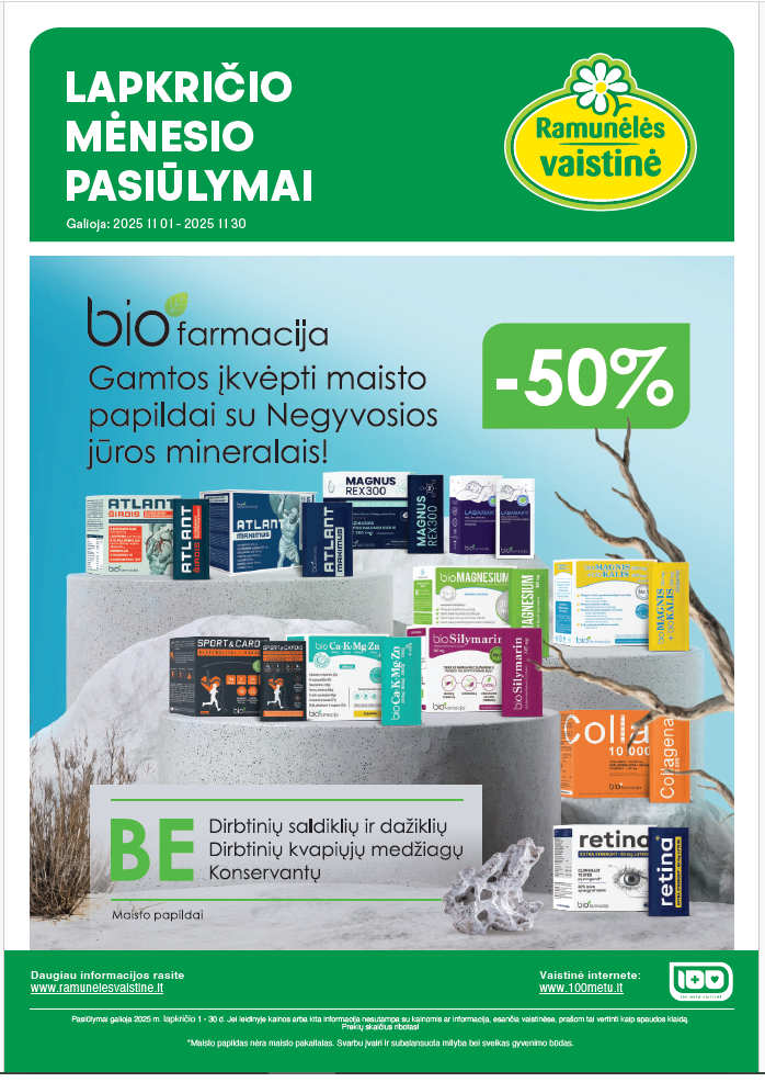 "Ramunėlės vaistinė" kas mėnesį savo klientams siūlo įsigyti vaistinės prekių už patrauklią kainą.